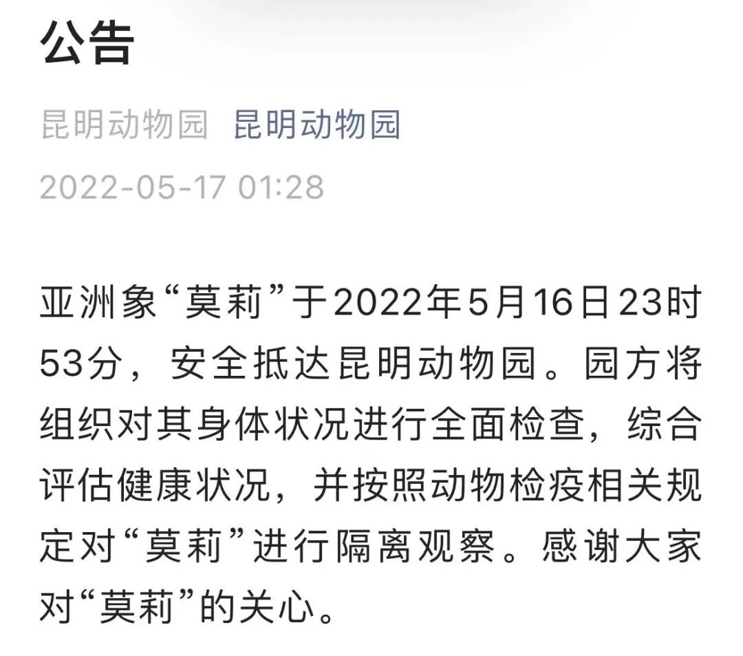 根据昆明动物园发布的最新公告