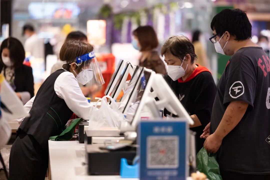 6月1日,市民在上海外滩金融中心一家超市款台结账。新华社记者 金立旺 摄
