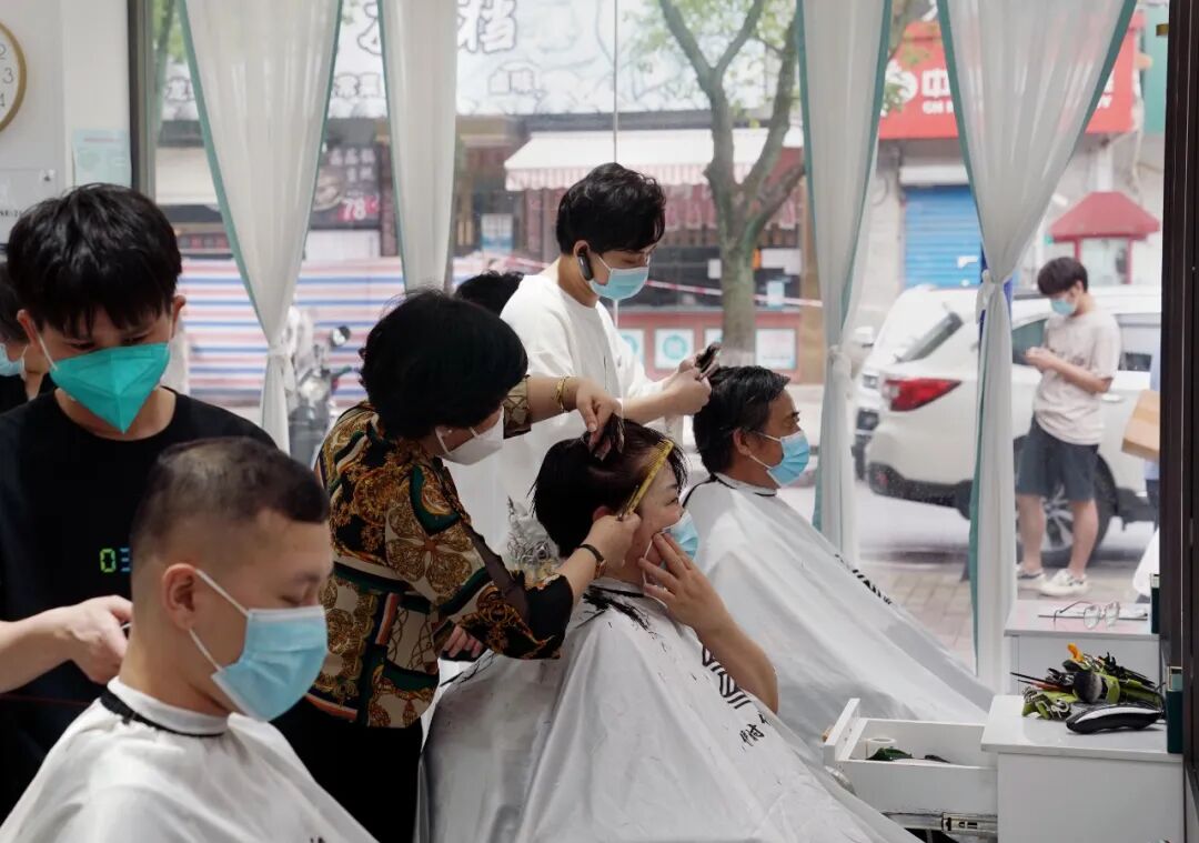 6月1日,顾客在闵行区一家美发店理发。新华社记者 刘颖 摄