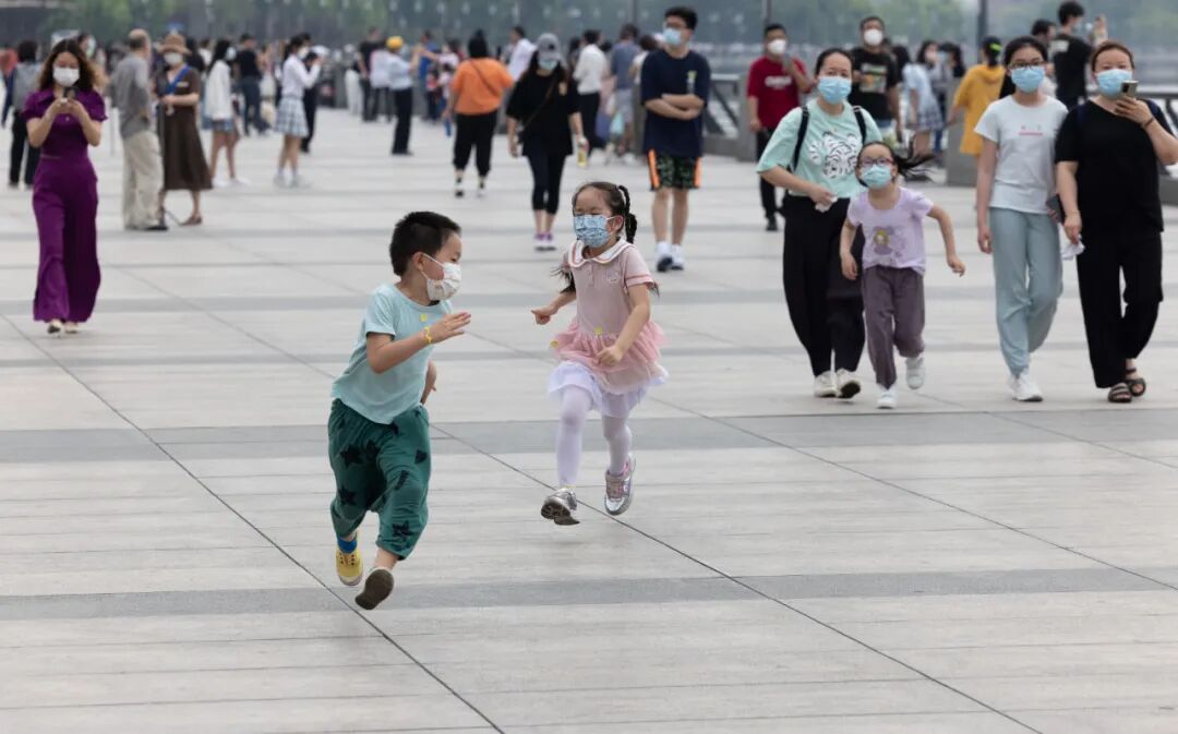 6月1日,孩子们在外滩观景平台玩耍。新华社记者 金立旺 摄