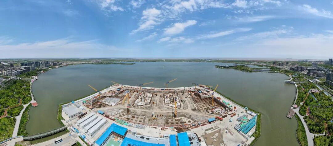 5月31日拍摄的上海浦东新区西岛金融中心项目建设工地(无人机照片)。新华社记者 方喆 摄