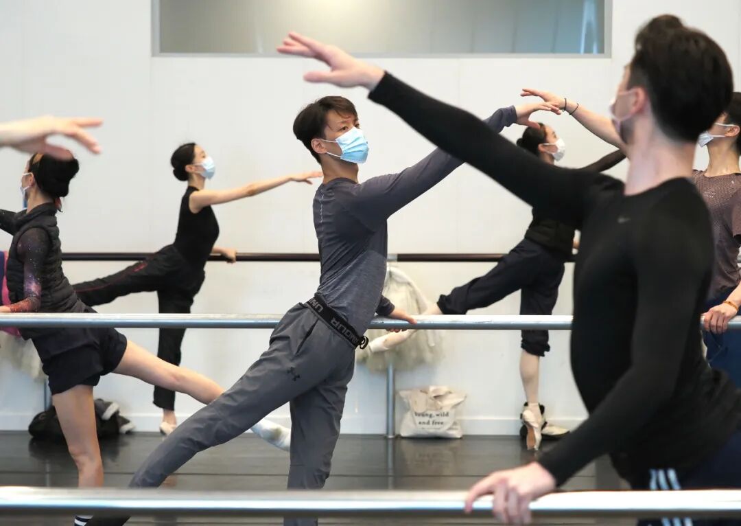6月1日上午在上海芭蕾舞团排练厅拍摄的复工后首堂基础训练课。新华社记者 任珑 摄