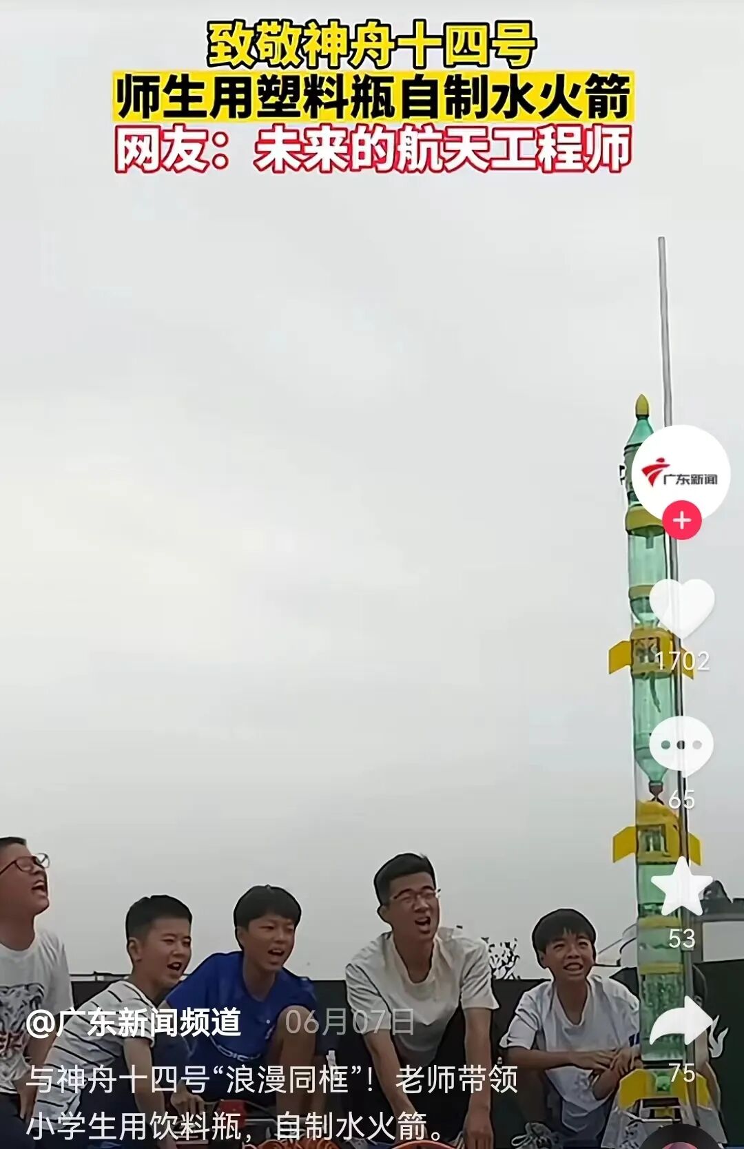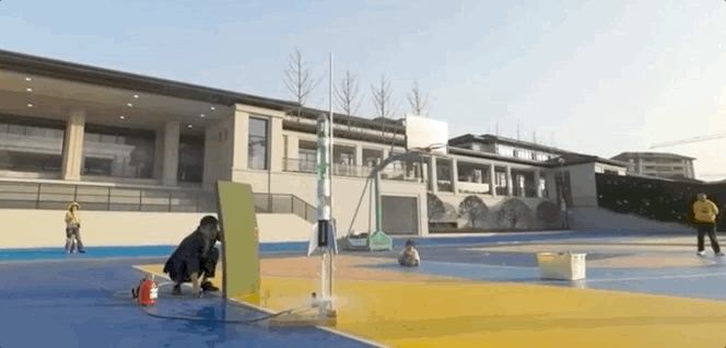 他带着孩子们完成了三级水火箭的“发射”