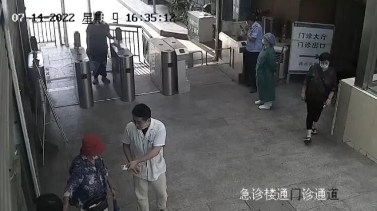 看到朱婆婆还在医院门口