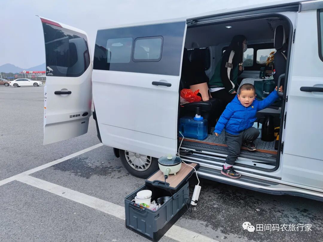 带了锅碗瓢盆和电热锅,上次出行的话带了一个卡式炉风很大影响做饭,这次聪明一点再直接带一个电热锅,不怕风雨,半路上煮了泡面。这样的话就不用进服务区吃饭了,服务区一进一出,关键人有时候也比较多,疫情期间为了安全还是少接触。