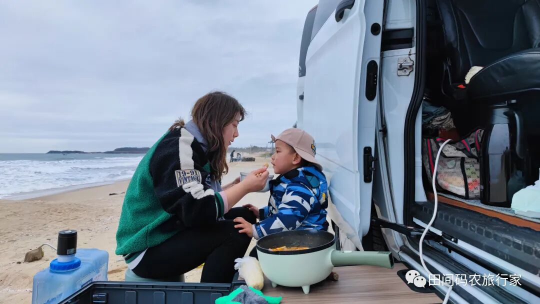下午的时候我们骑车去了海边,然后用了电煮锅煮了一碗饭,确实非常的不错,这个小车自带6度电,一切都是自己改装的,作为陕西人的我,每一顿都离不开面食。