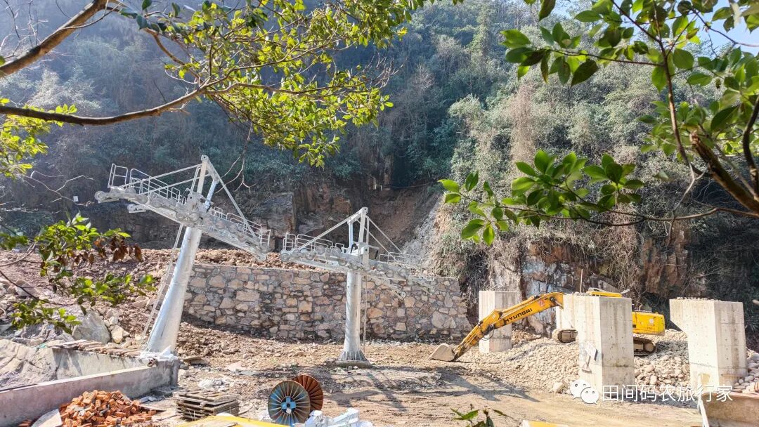 看到了,还在建设中的景区,这应该是一个空中的滑索道的转盘。