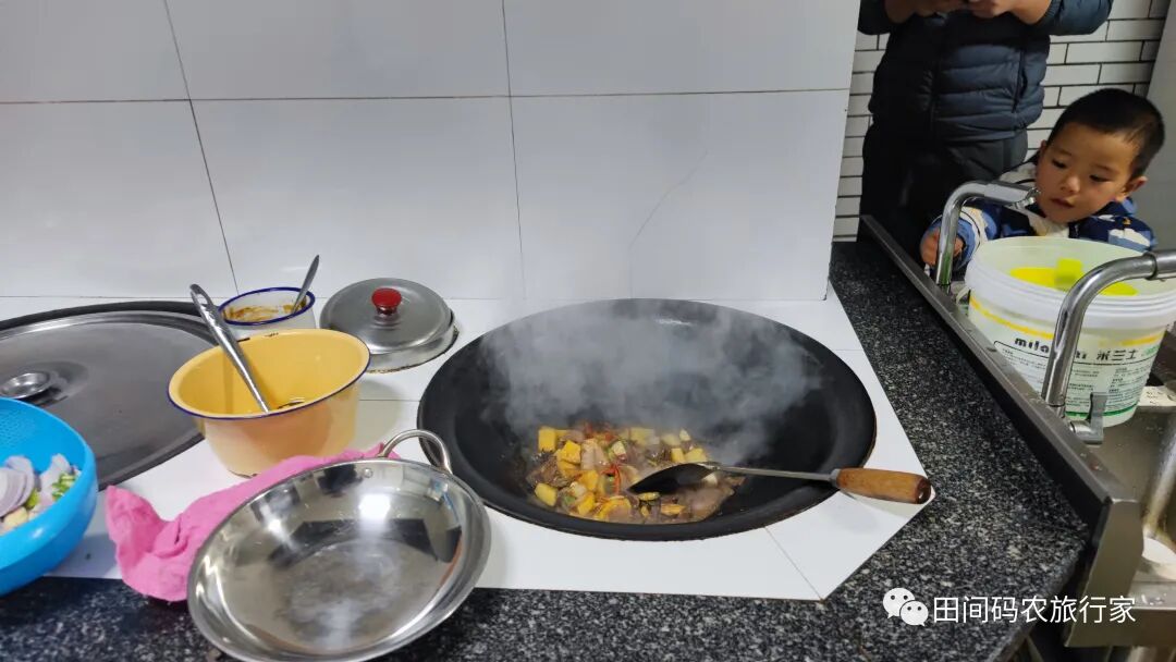 在傍晚的时候找了一个农家住了下来,刚好他们家里有小时候的锅灶台,于是跟老板商量了一下,他们准备了一些蔬菜,我自己来炒菜。