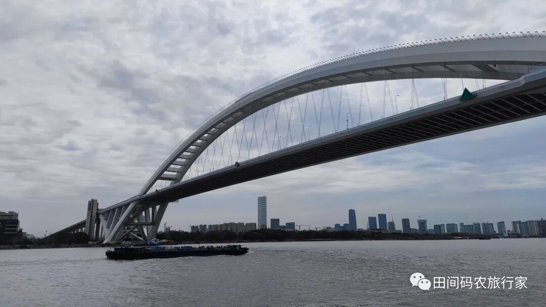 南浦大桥竣工通车于1991年12月1日的南浦大桥,总长8346米,主桥长846米,跨径423米,通航净高46米,桥下可通行5.5万吨巨轮。它是目前世界上第四大双塔双索面斜拉桥,呈“H”形的主桥塔高150米,上有邓小平同志亲笔书写的“南浦大桥”四个大字。主桥设有6条机动车道,桥面总宽为30.35米,两侧各设2米宽的人行道,游人可乘坐电梯到达主桥,一览浦江两岸无限风光。南浦大桥是黄浦江的第一座大桥,宛如一条巨龙横卧浦江之上,使上海人圆了“一桥飞架浦江”的梦想。