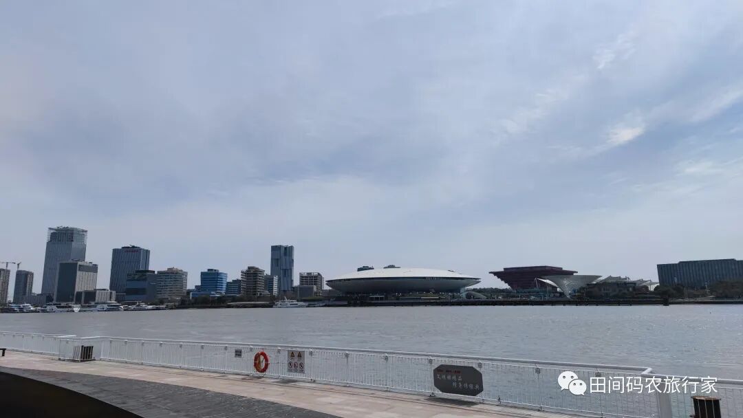 江边的对面就是奔驰梅赛德斯文化中心,遥远看过去就像一艘停放的飞碟。