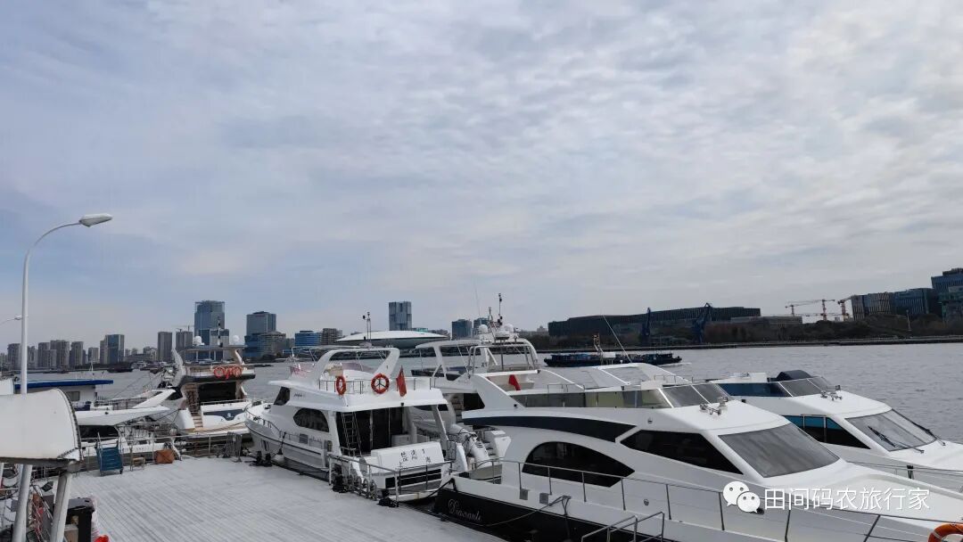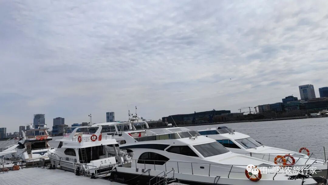 因为是春天还有些寒冷,所以江边停放了很多游艇。