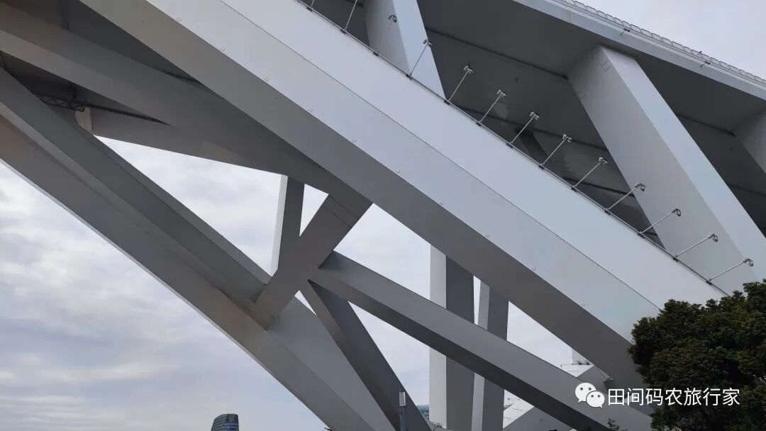 在大桥的底下看这个桥梁,人显得非常的渺小。