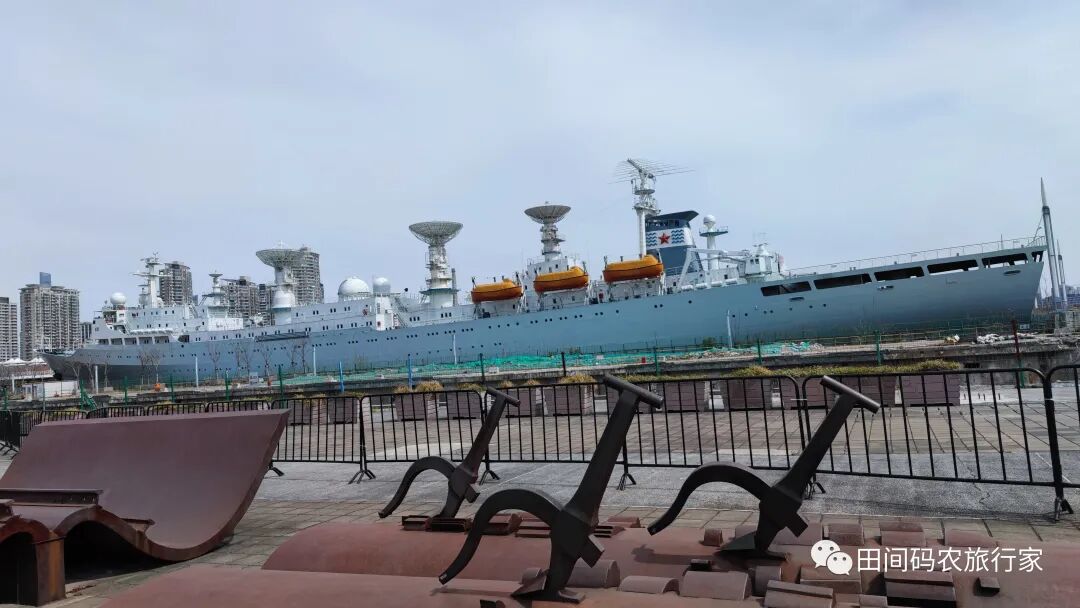 在黄浦江的旁边挖了一个很大的水槽,然后把这艘舰艇停放进去的,利用水闸的开关可以进行进出。在大多数的时间都是用来展览。