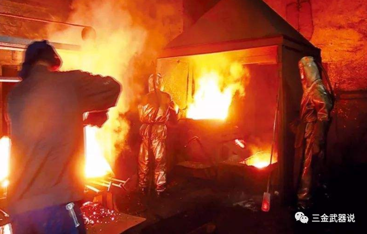 而这种焊接,可不是平时所见到的那么简单的情况,需要超过2000度的高温焊枪,而且要在一瞬间完成熔化和焊接,使用氢氧焰喷射灯,就连金属防护服都无法抵御高温,直冒烟,旁边站着同事专门往焊接师傅身上不停浇水,以免人体经受不住。