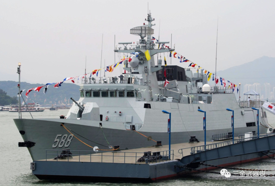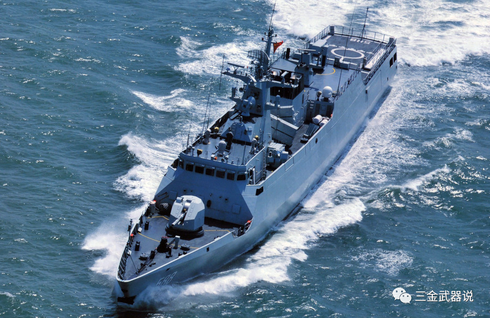 这款舰艇可以载最多80人,满载1400吨,长度89米,宽12米,航速28节,续航达到3500公里左右。可以搭载直-9C舰载直升机。还搭载隐身舰载火炮武器和导弹等。