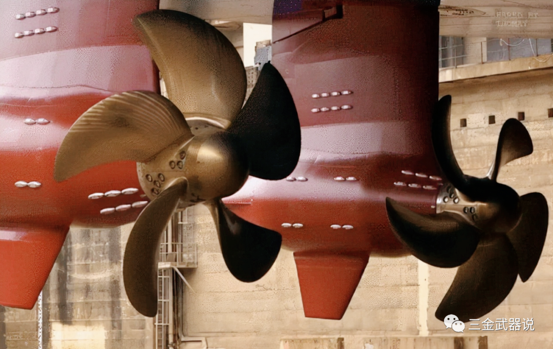 而按照大家的本来思想看来越少的话,它的转速就会越高,再加上螺旋桨的直径越大,它的拉力也就会越大,这对于巨型船舰来说动力提供就有了保证。
