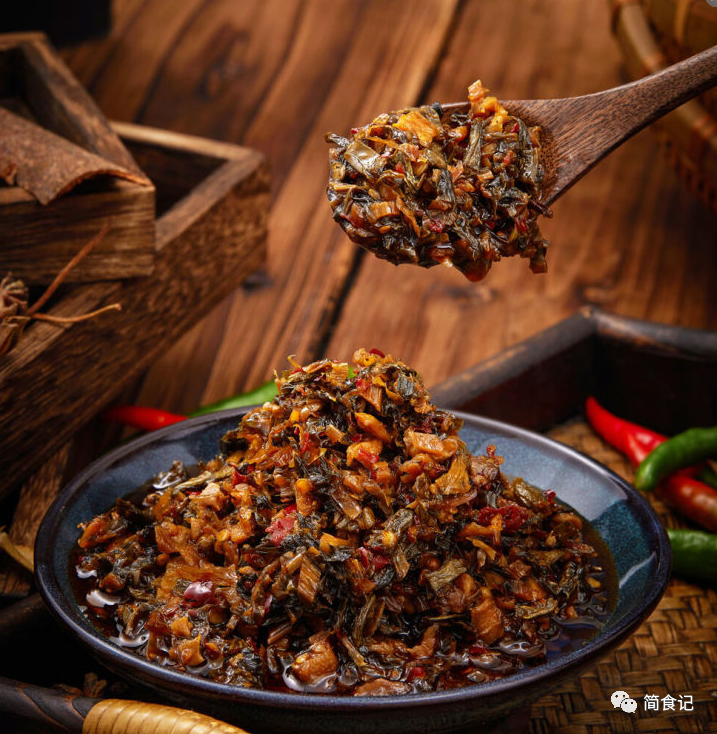 5:湘西外婆菜,这是湘西人从小吃到大的一道特色家常菜。一般选用野菜,土菜,采用传统的方法进行腌制,没有任何防腐剂,加上肉泥、辣椒、植物油等,嚼之有劲,品之逾香,而且开胃下饭,是难得一见的时尚湘菜。据说,在古时因为交通不发达,湘西女儿出嫁后,很难再回娘家省亲,于是在女儿出嫁前,母亲会为女儿做上一份“离家菜”,包含酸,甜,咸,脆,辣等滋味。入儿口,在娘心。慈母一片爱女之心,这道菜也一代代传了下来。