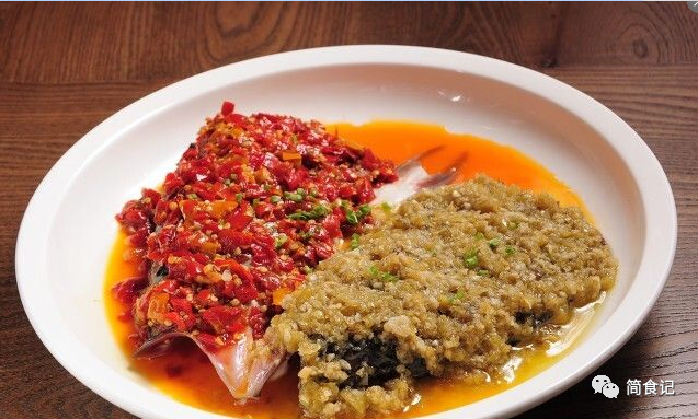 1:剁椒鱼头,作为湘菜的代表,这也是考核湘菜师傅是否合格的必过关卡。其实,剁椒鱼头好吃与否,除了鱼要新鲜之外,再就是剁椒要正宗,二者缺一不可。剁椒鱼头的出处,据说可以追溯到清朝的雍正年间,反清人士黄宗宪因文忌“文字狱”而出逃,途经湖南的一个小乡村,借住在一家农户中,农夫拿出胖头鱼招待他,鱼肉做汤,再用自家剁碎的辣椒与鱼头同蒸,黄宗宪吃过后无法忘怀。便让家厨对这道菜加以改良,于是就有了“剁椒鱼头”。