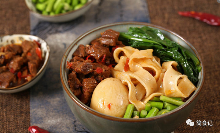 8:【陕西biangbiang面】,很多网友都说,写着最难写的字,吃着最好吃的面。作为陕西最著名的一碗面,面条像裤带,据说一碗面只有四根,可别小瞧这四根面,听老板说,一碗面足足有半斤多面。面,筋道滑爽,再淋上香喷喷的热油,搭配上丰富的浇头,吃起来贼过瘾。