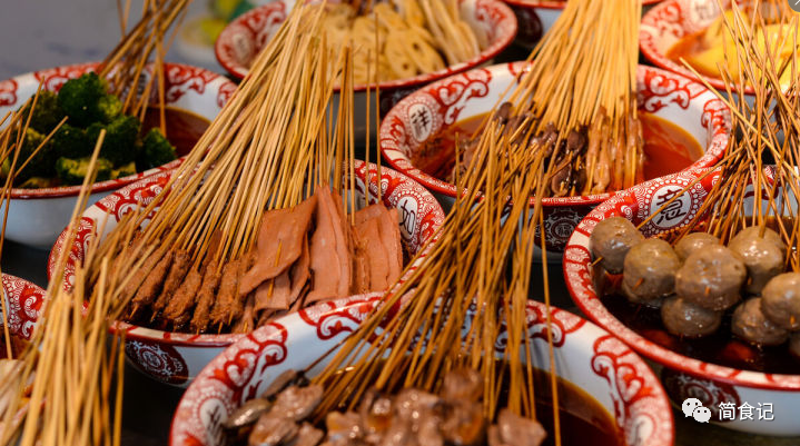 还有好多家庭晚上会吃冷锅串串,这是一种来自串串香火锅的演变,各种蔬菜,肉食,用竹签穿好,最后再放入特制的卤锅里煮熟。四川人喜欢吃辣,串串自然少不了辣。