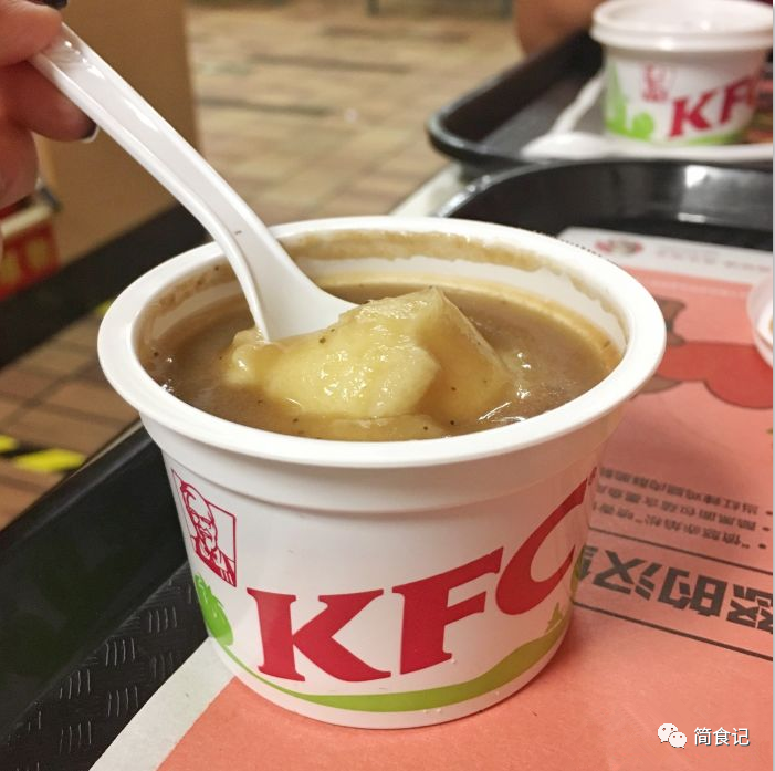 1:土豆泥,虽然说分量不是很大,但味道是很多人认可的,口感细腻爽滑,配上胡椒粉,口味很特殊,自己在家很难模仿。以前觉得老奶洋芋很好吃,已经是口感界的天花板了,但吃过肯德基的土豆泥之后发现,老奶洋芋被秒成渣。