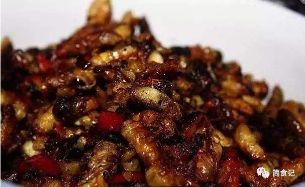 2:炒香虫,香虫是苗族人选取的大马蜂,花脚蜂,小蜜蜂等饱满的幼虫,经过炒制或者煲汤,也可以焙干炒香,滋味鲜美。在当地人的口中这是鲜美至极的食物,可是在外地人眼中,这是一种难以下咽的黑暗料理,无从下嘴。