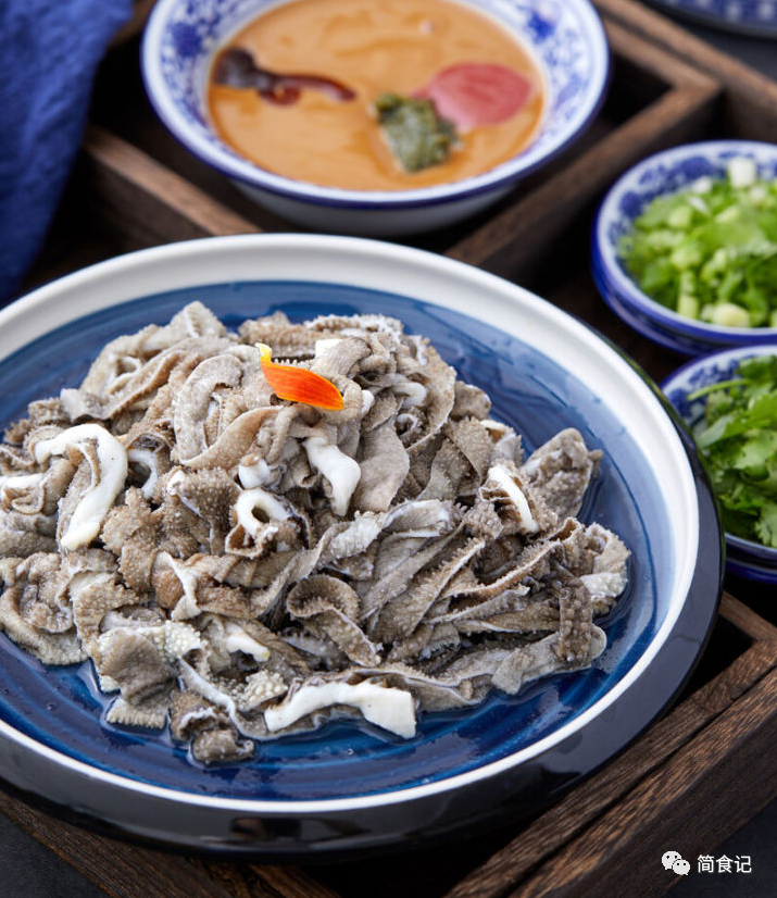 5:老北京爆肚,爆肚是北京风味小吃中的名吃,不少吃货都为之倾狂。爆肚又分为羊爆肚和牛爆肚,食材处理干净之后,改刀成条状,沸水下锅马上捞起,根据不同部位决定汆烫的时间,少一秒则生,过一秒则老。之后,拌入芝麻酱,醋,辣椒油,葱花等调料,口感香脆,鲜嫩爽口,芝麻酱香浓。