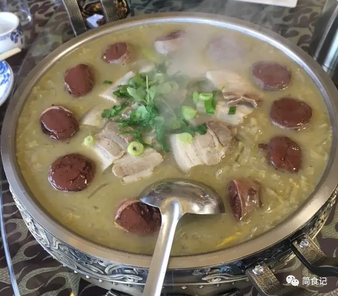 2:杀猪菜,说起这道像剩菜的美食,也必须要榜上有名。虽然颜值不高,但这道菜却真的好吃,新鲜的肥肉,酸菜,血肠,粉条,炖上一锅,热乎乎,烂乎乎,香喷喷,吃起来非常的过瘾。因为是用酸菜和血肠,粉条,长时间炖煮,看起来像极了剩菜,毫无食欲,甚至还有一种令人作呕的感觉。