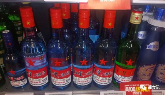 相较于传统的绿瓶红星二锅头,蓝瓶酒算得上红星在二锅头上的一次巨大创新了,为了适应当时年轻人的口味,红星一改从前绿瓶的重口,研发出了口味更柔和的蓝瓶,冲劲儿也远不如绿瓶酒那样强烈。