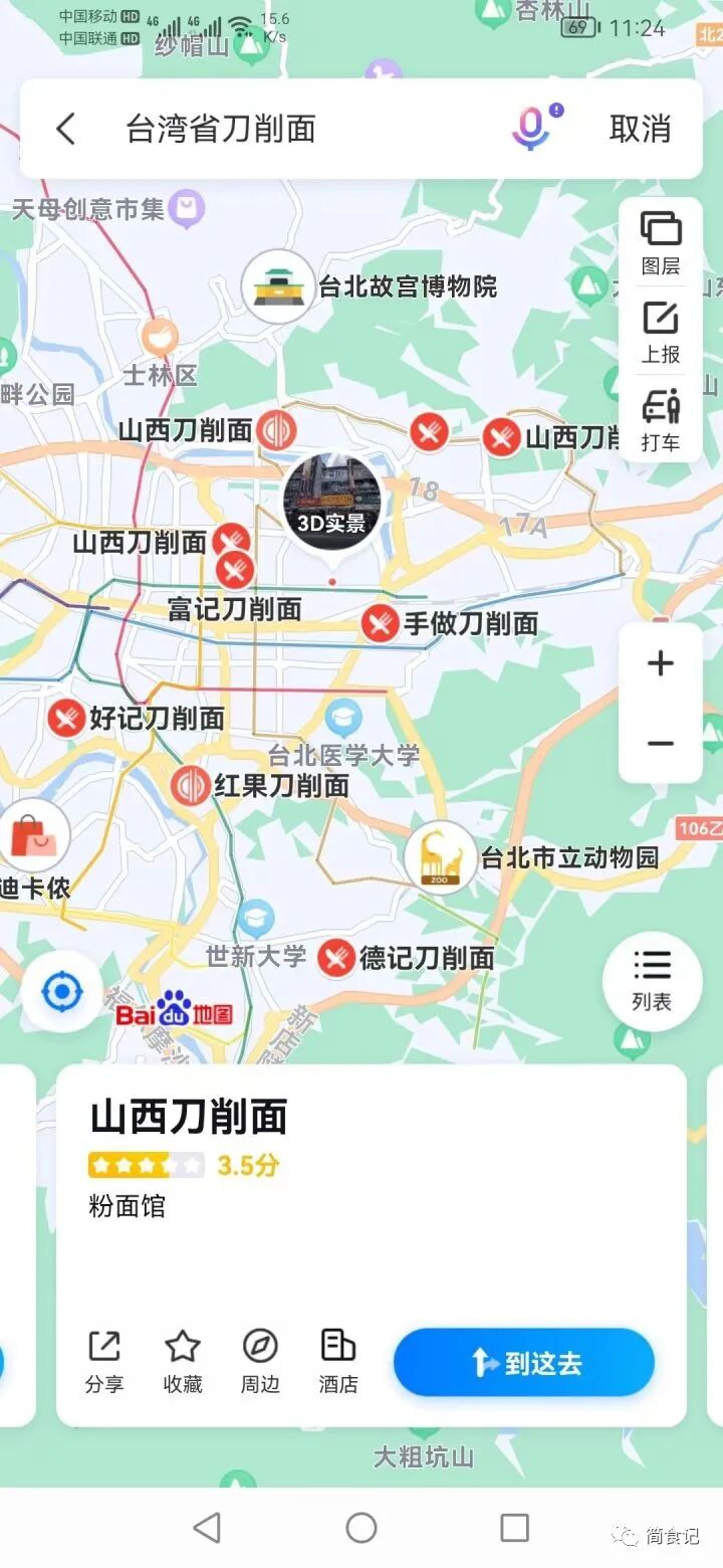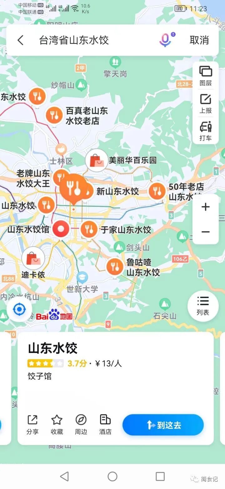 此外,还有好多以山东命名的餐馆。“老山东牛肉面”,“山东水饺馆”,“山东水饺”,“山东葱油饼”,足以可见鲁菜的魅力之大。除此之外,还有山西的刀削面,杭州的小笼包,广西柳州的螺蛳粉,兰州拉面,重庆火锅,新疆羊肉串,云南过桥米线,南京鸭血粉丝汤……在百度地图上,寻找台湾的中国味!台网友:唯有家乡味才能解千愁!