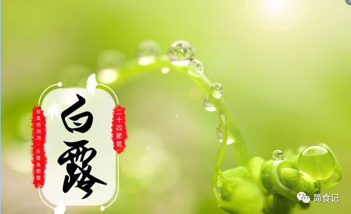 白露节气的特征是什么?所谓的白露,是因为昼夜温差变大,夜晚的花草树木上已经有露水出现了。露水就是空气中的湿气在凉气的作用下,凝结而成的小水珠。因为秋天属“金”,“金气”也就是凉气,金为白色,所以也叫“白露”,也可以称其为“金露”。在古时人们为了适应季节的特性,就会选择在白露这一天吃“十样白”,所谓的“十样白”指的是十样带“白”字的食物或者草药,一般会有白芍,白芨,白术,白扁豆,白莲,百合,白茯苓,白山药,白茅根,白晒参。