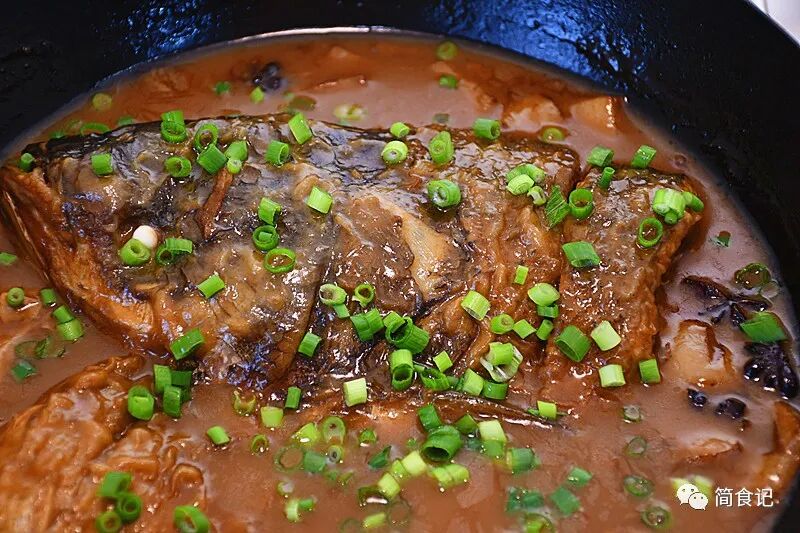 5:炖煮40分钟之后,改用大火快速收汁,见汤汁黏稠,就可以关火出锅了,撒上切好的香葱末,就可以大快朵颐了。
