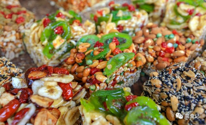 2:新疆切糕。这是一种前几年比较受欢迎的食物,在大街小巷,景区,学校门口,小区门外,经常看到售卖新疆切糕的新疆人。撒满核桃,葡萄干,干果的切糕,看起来五颜六色很是诱人。