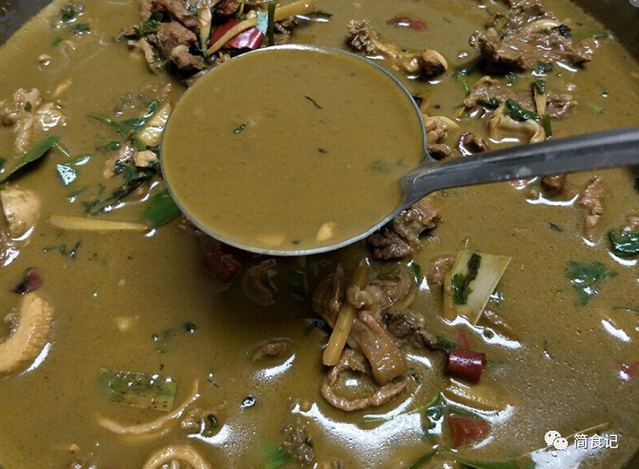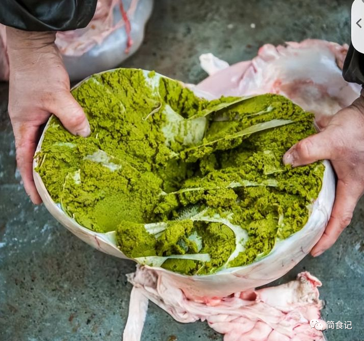 牛瘪汤做法很奇葩,就是牛吃进肚子里的食物,还未形成粪便的熬煮而成的汤汁。牛在屠宰之前,会先饿两三天,等排空胃部后喂食中草药,所以牛胃里面全部是没有完全消化掉的草,这种草料带有淡淡的牛屎味和草料味,经过加工熬煮成汤汁。这种泛着绿色的汤汁,在当地被称为“百草汤”,在当地人眼中,喝这种汤可以强身健体,但很多外地人会浮想联翩,而且味道有一股酸涩味,比较难闻,更别说吃了。