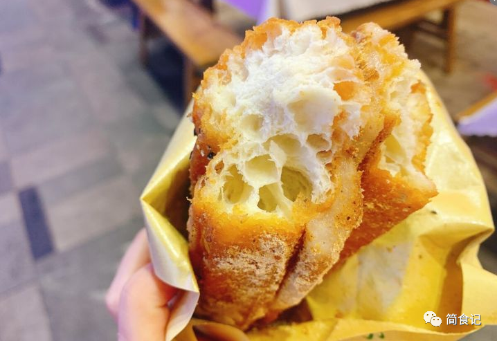 5:说到美味的油条,怎么能少得了江西老表呢?糯米反复捶打做成麻糍,搓成长条之后放在油条上,再撒上花生碎,黑芝麻,或者喜欢甜口的撒点白糖,之后对折油条,再在香气宜人的芝麻中打个滚。这样一份当地人最爱的油条包麻糍就完成了。一口咬下,唇齿留香。油条的酥香与麻糍的软糯,搭配得相得益彰,此口味历久弥新,风靡不衰。