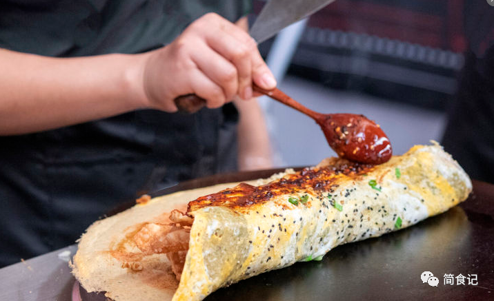 6:天津人的早餐,是被一套香喷喷的煎饼馃子唤醒的。作为天津的著名小吃,是当地人引以为傲的特色美食。煎饼馃子由绿豆面薄饼,鸡蛋,馃子组成,再根据自己的口感搭配上面酱,葱花,腐乳,辣椒酱,制作而成。煎饼馃子里面的“馃”就是油条,当然,馃子也可以替换成馃箅儿,同样都非常的美味。油条的油润香脆,搭配上柔软的饼皮,虽然是碳水+碳水的高卡路里组合,但在这份美味面前,已经管不了那么多了。