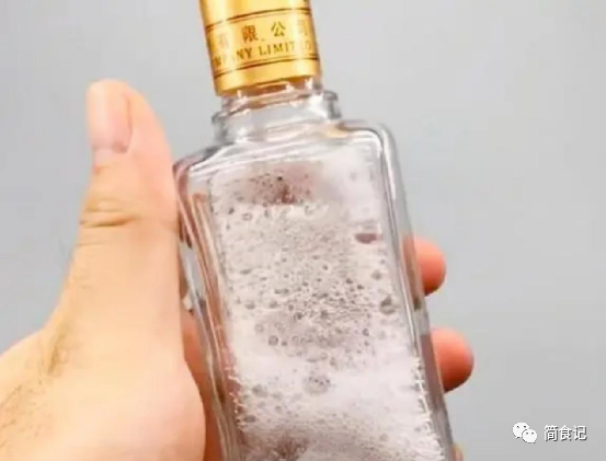 在超市里,我们还没有付钱,很多辨别的方法又不能用,只能用一些简单快捷的方法。把酒瓶子反着拿,晃动瓶身,我们盯着液体看看是否有大量的酒花,而且酒花出现之后可以保持很长时间,就说明是纯纯的粮食酒,要是它的酒花只能保持一会就消散了,那就是勾兑酒无疑了。