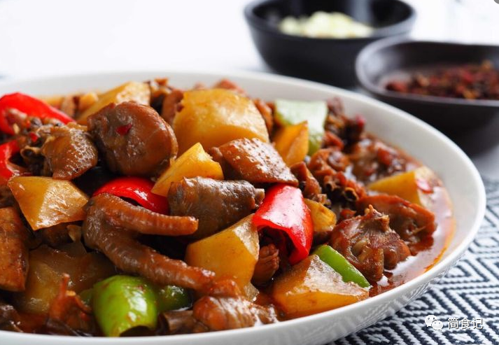 2:大盘鸡,大盘鸡又叫沙湾大盘鸡,据说起源于20世纪80年代!主要是用整只鸡,配上土豆块,皮带面烹饪而成。颜色红艳,口感爽滑,滋味香辣,绝对是餐桌上的佳品。尤其是里面的面皮,吃起来滑溜溜的很舒服。