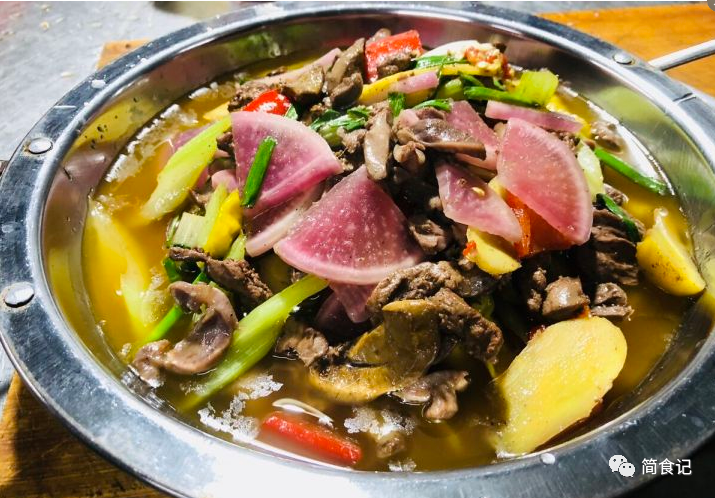 5:黔江鸡杂,黔江位于重庆东南边缘,地处武夷山腹地,东临恩施土家族,西靠彭水苗族自治县,是渝,鄂,湘,黔四省市结合部!作为黔江地理标志性美食,在上世纪90年代出现在当地的一些小馆子当中。红艳艳的泡辣椒,粉嫩嫩的泡萝卜,再佐以葱,姜,花椒等调料,文火慢炒,精心调制,色味鲜美,醇香可口!随着此菜的名气越来越大,在全国各地都能吃到,但唯有在黔江才能吃到最正宗的,有时间记得去打卡哦!