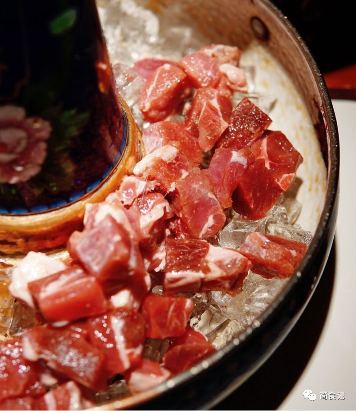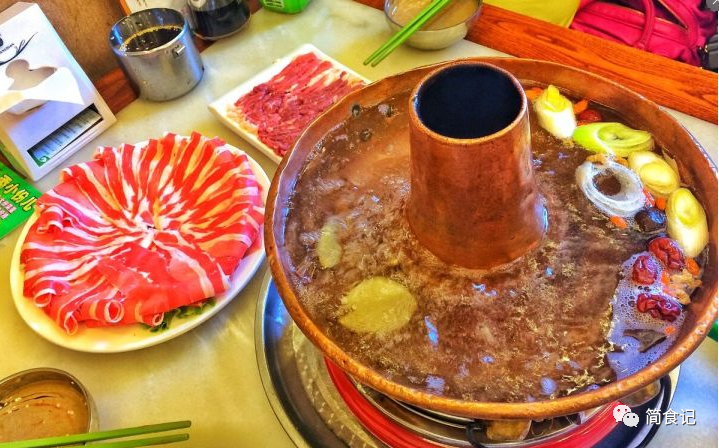 老北京铜锅涮肉,肉是北方火锅的永恒主题。其实老北京涮锅就是满族的火锅,据说是成吉思汗发明的。当时士兵们用钢轨煮水烫肉,为了追求速熟,士兵们用随身携带的小刀将鹿肉,狍子肉,切成薄片,再蘸油盐吃。