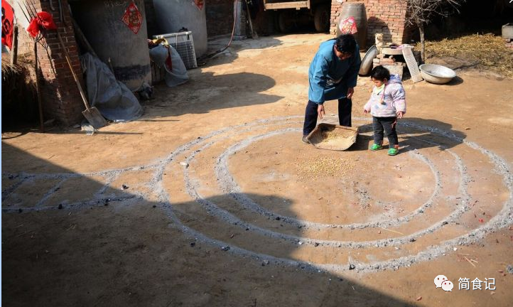 再一个就是打粮囤,不知道南方有没有这个习俗,在北方是挺受重视。二月二这天早上要用锅灰在自己家的院子里或者大门口,画出一个个的圆圈,最后在最中间的位置撒上五谷杂粮。这样做上苍可以保佑风调雨顺,五谷丰登。