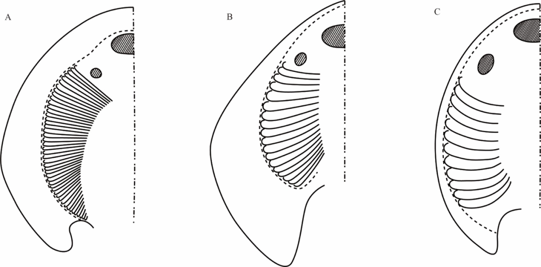 东方鱼最大的特点是“多鳃”,它的鳃囊数目多达45对,是史上具有鳃囊数目最多的盔甲鱼类。鳃是盔甲鱼类最重要的呼吸器官,两侧对称排列于头甲腹面,能帮助盔甲鱼类从水中获取氧气。鳃囊越多,鱼就越能扛得住缺氧环境。