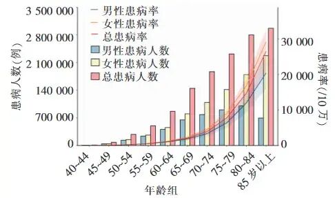 2019年我国的阿尔兹海默症及其他痴呆分年龄组患病情况