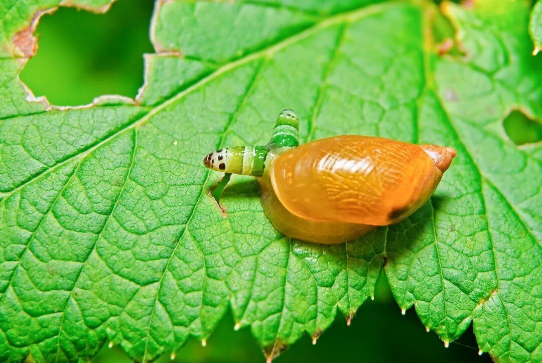 被改造后的蜗牛,习性也发生改变,不再昼伏夜出,而是活跃于白天,甚至还会爬到较高的叶片上,引诱鸟来啄食。