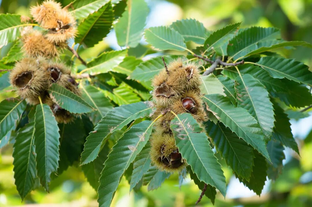 板栗有“干果之王”的美称,想象不到吧,它竟然包裹在一层刺里面,其实板栗在成长期整个就是一个小刺球,全部都是刺,圆圆的,看着很好玩,但是基本上碰不得,否则就会满手都是各种小刺。