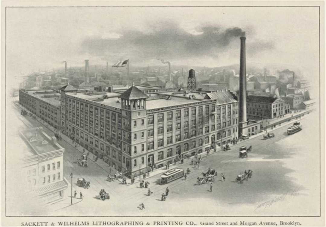 这是 Sackett-Wilhelms 平板印刷和出版公司设在布鲁克林区的一间印刷工厂。