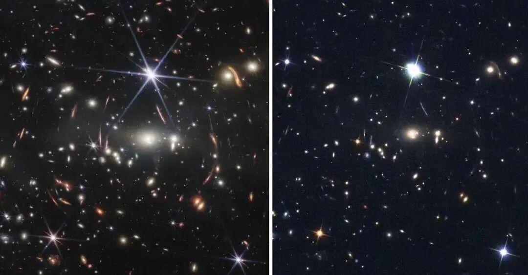韦布和哈勃空间望远镜针对同一天区拍摄的照片之对比