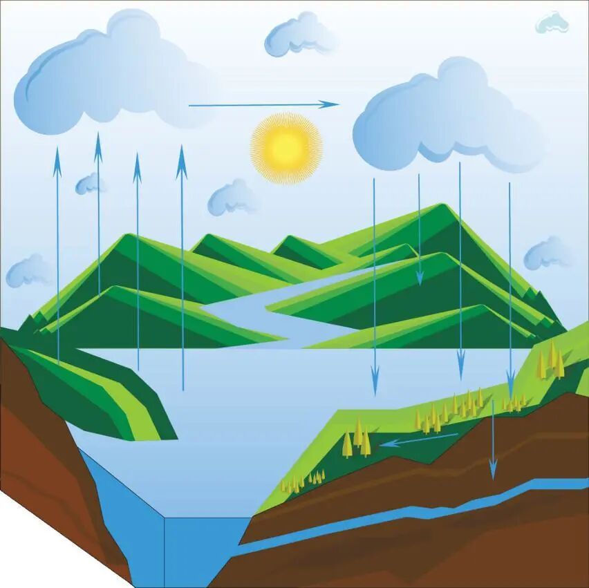 要回答这个问题,我们首先需要了解一下什么是水循环。水循环是地球表面的水,比如说江河湖海,它里面的水在太阳的照射下,通过直接蒸发和植物蒸腾变成水蒸气之后,上升到天空,凝结成为云,在大气环流的推动下、在空气中随气流运行,到达一定的条件,部分变成了雨或者雪,然后降落到地表或者水面上。降落下来的水有些渗入地下,有些经植物所吸收、汁液蒸腾进入大气层,其余的则沿着地表径流汇入到江河湖,最后流入大海。数十亿年以来地球上的水正是在这样不停的运动中循环往复成就了如今的蓝色星球。