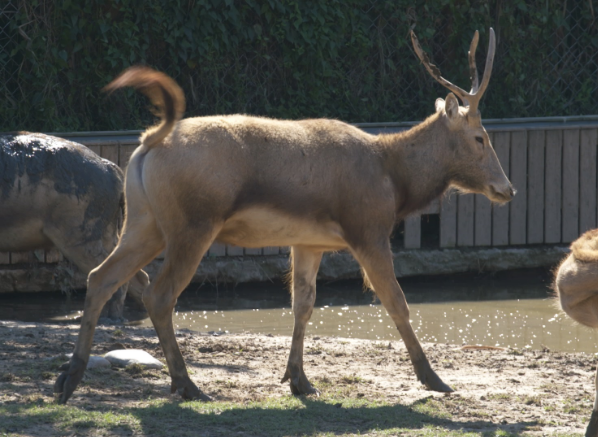 角像鹿。鹿科动物的角是分叉的,除了驯鹿雌、雄都长角,其它鹿种只有雄性鹿长角。而且大部分鹿种的鹿角都是向前分叉,向前伸展,形状各样,只有麋鹿与众不同,和别的鹿种反着来,它的角向后分叉!