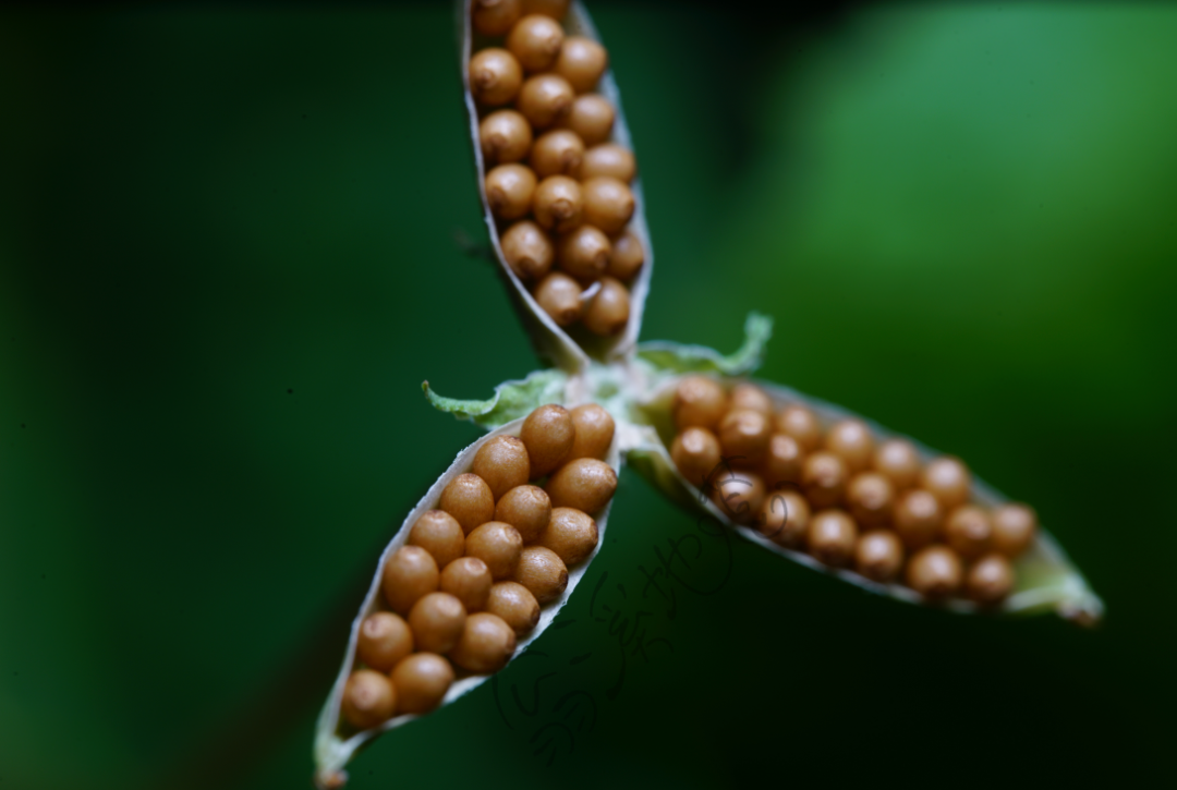 不管是正常花,还是闭锁花,等结了果实几乎就看不出有什么区别了。它们慢悠悠的伸出叶丛之中,高高挺起,之后果实分成三瓣,露出其中丰收的种子,接下来就是怎么把种子们送向远方的精彩操作。